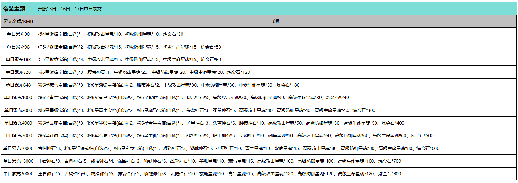【活动内容】:新服开服前首日累计实付500元以上可申请对应档位奖励