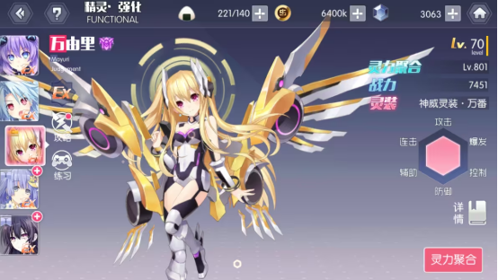 C:天使突破,消耗对应角色碎片VS精灵本源升级,24级为上限,一级5点,最多获得120点。