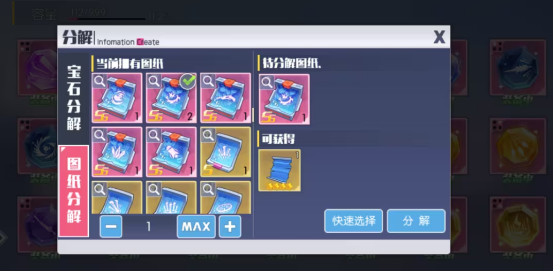 宝石/图纸分解功能:在背包里的宝石界面里进行分解操作,换取对应材料