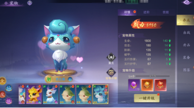出色的宠物也是战力提升的关键,独特的技能还能同时上场多只宠物,之间的搭配选择更多,其养成也有装备等手段,不用担心战力不够等问题,而获得手段,除去游戏主界面的百炼召唤外,时常会有新活动,日常则有副本隐仙窟、偷蛋等,建议选有给角色加成的宠物,如SSR桃花优伶、SP舞狮灵童等,同时品阶越高,宠物技能越多