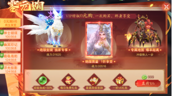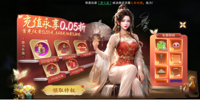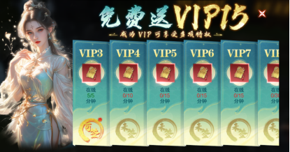 游戏角色创建完即可领取特权奖励,在线就送VIP15,0.05折首充只要0.03元