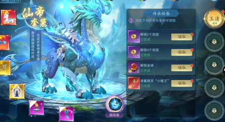 完成仙界传承一系列任务,免费领取仙帝极品套装
