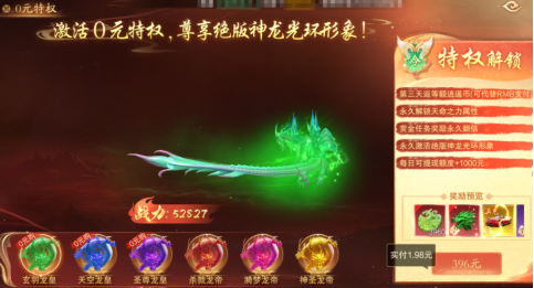 激活养龙寺0元特权,神龙光环形象,超多福利特权,能提高养龙寺额度,每日免费仙玉额度!!!