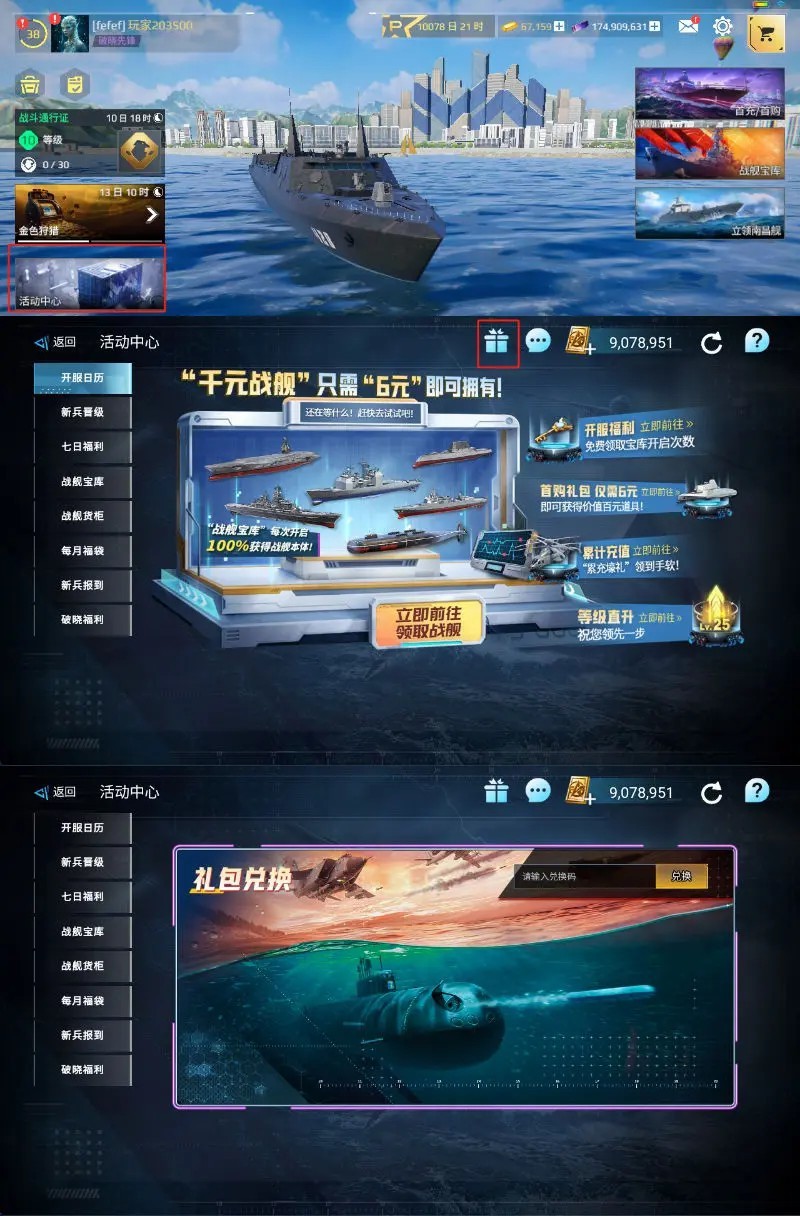 进入游戏→点击“活动中心”→点击顶部“礼包中心”图标→输入礼包码完成兑换