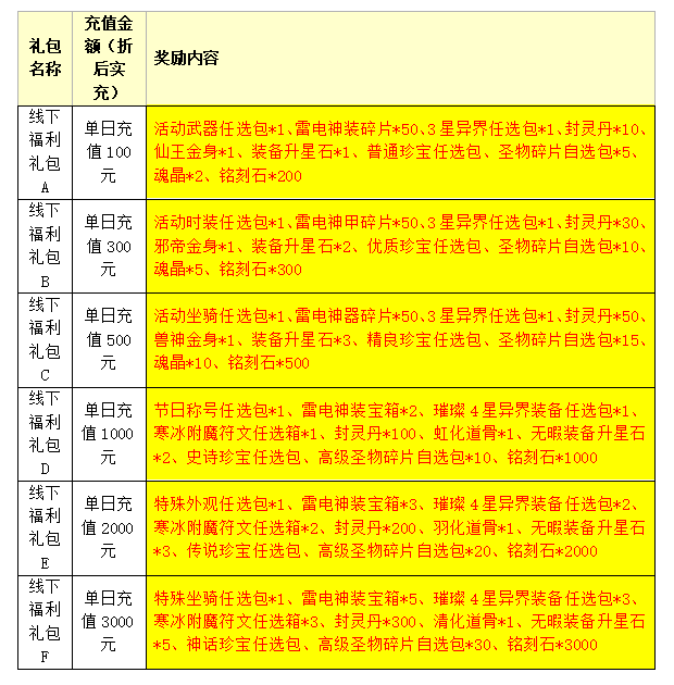 (4)玩家单日充值超过最高档位(3000)后,可按最大金额组合领取多个激活码