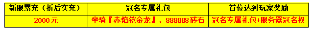 ②每个区服折扣后实际付费2000元以上,可以获得区服冠名+冠名礼包(含绝版专属坐骑:赤焰铠金龙)