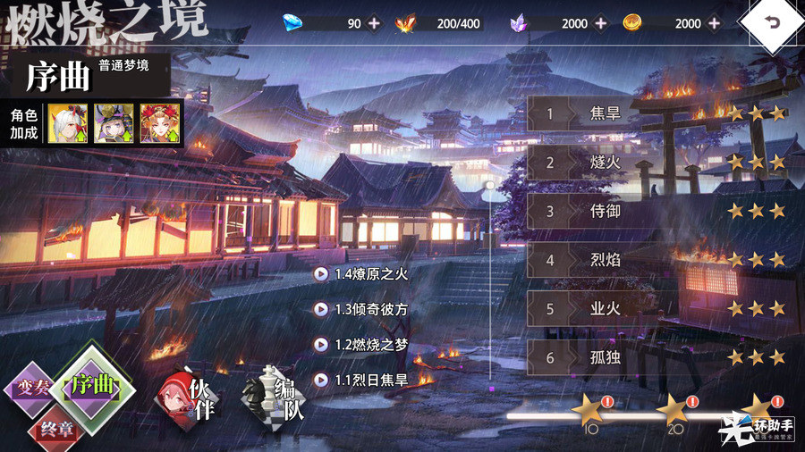 此次活动的大型活动副本「燃烧之境」有3个难度:「序曲」、「变奏」、「终章」。进入「燃烧之境」活动副本会消耗入梦燧石,入梦燧石会随时间自动恢复。通关主线梦境副本、探索、日常试炼也有概率获得入梦燧石。