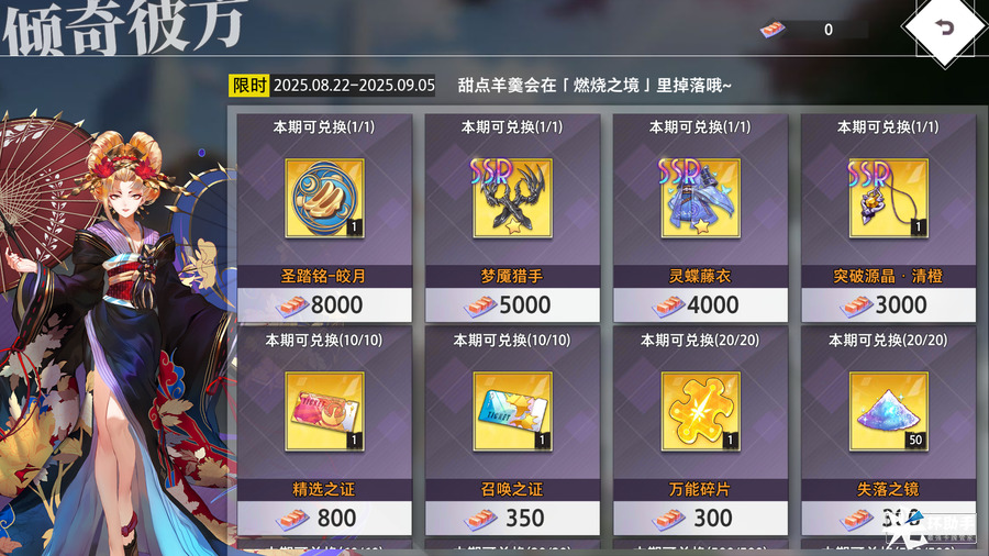 过关「燃烧之境」活动副本会获得道具「甜点羊羹」,它可在「倾奇彼方」中兑换超值奖励哦~