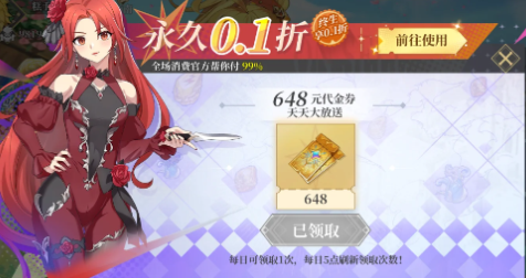 2、每天内置送648代金券,永久可存!