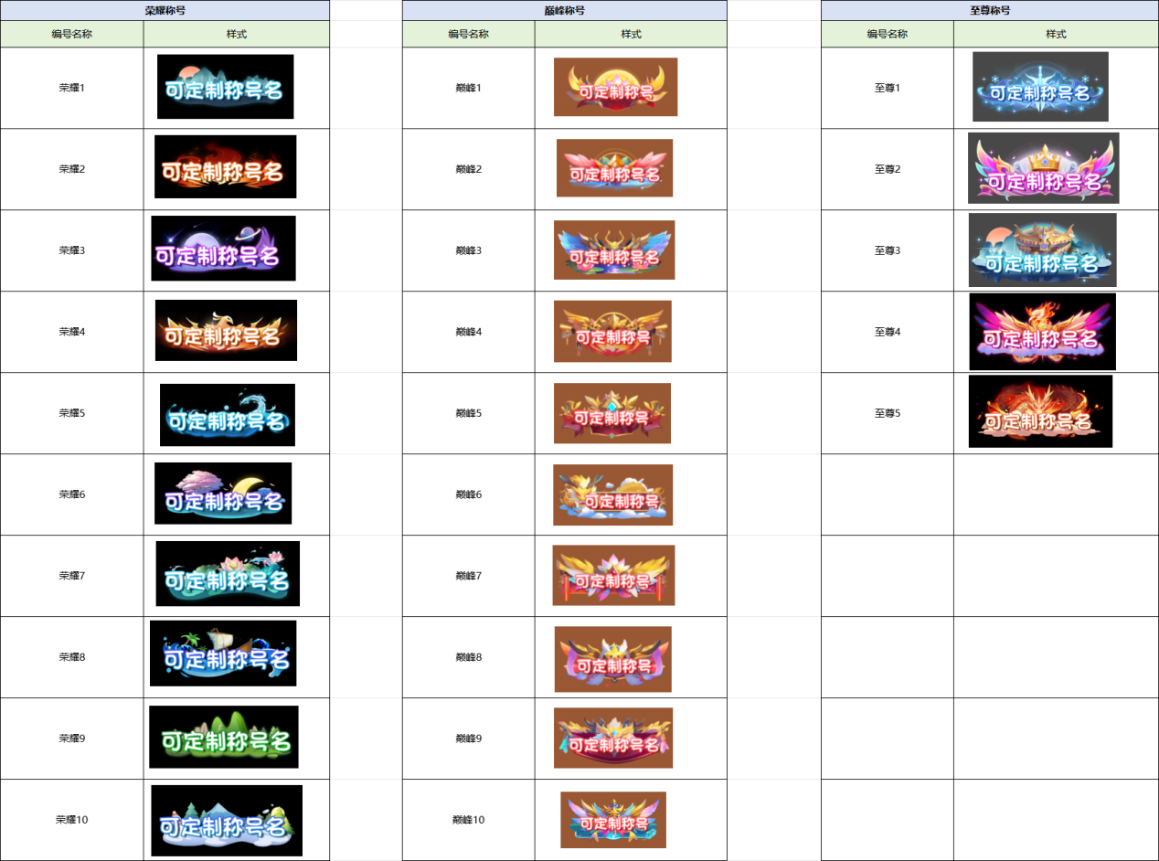 特别说明:若玩家没有提供称号外观模板编码,则默认使用编码1模板。