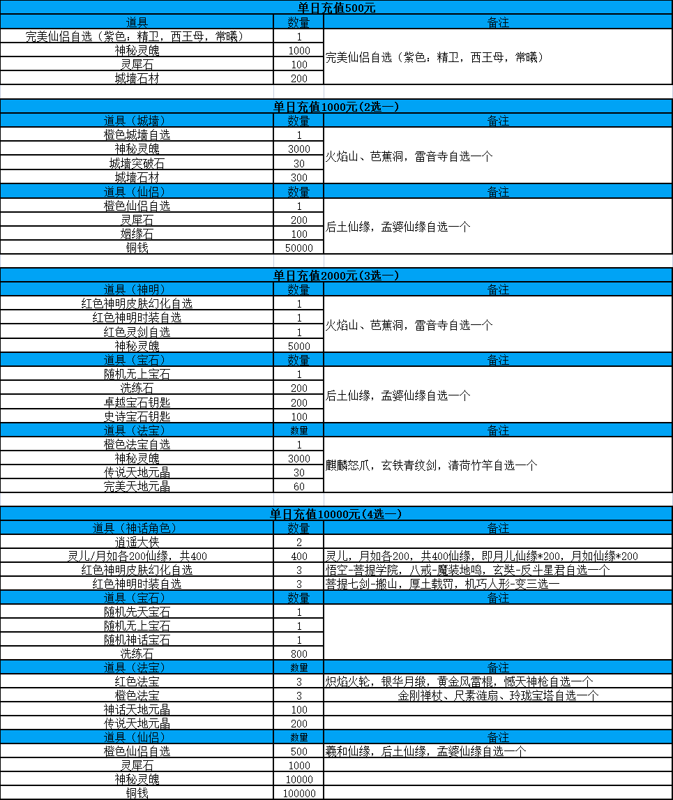 注:单日大额累充,可额外申请稀有道具返利,其他额外返利请联系客服咨询