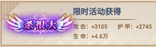 杀很大:攻击+3105、护甲+2745、生命+4.6万