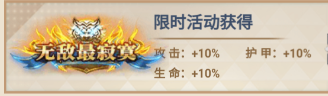 无敌最寂寞:攻击+10%、护甲+10%、生命+10%