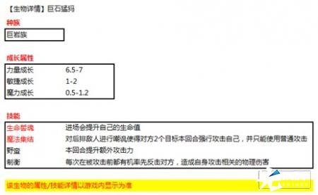 注:该生物的属性/技能详情以游戏内显示为准