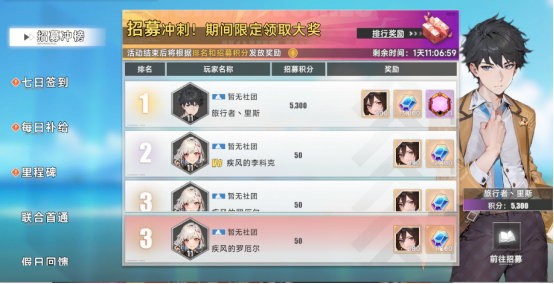 2、开服招募冲刺领取SSR三笠碎片钻石大奖