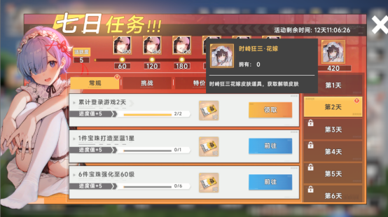 3、完成七日任务可领取时崎狂三稀有花嫁皮肤!
