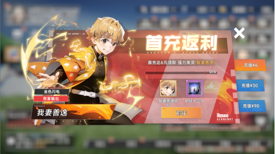 1、首充仅需0.06元领取强力输出SSR英灵我妻善逸