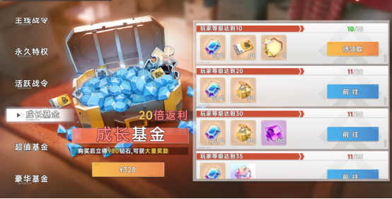 2、超值月卡终身卡微氪党必备,钻石领领领