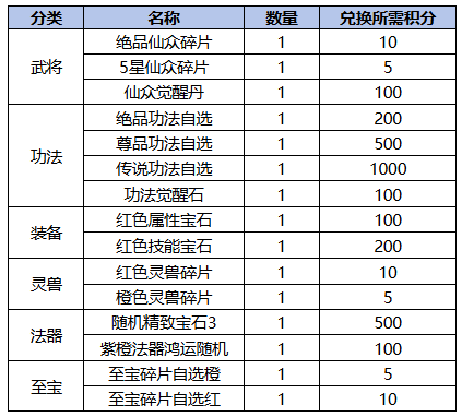 终身累充3000元:5星仙众碎片*100,唤仙符*50,养成材料自选*50