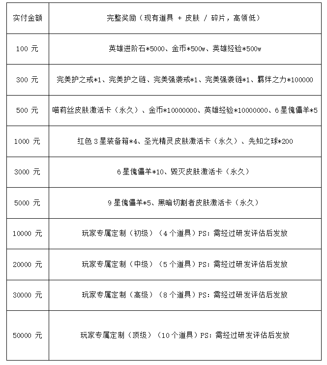 1.活动规则:充值满足条件即可领取所有满足档位返利(每个档位返利只能领取1次),一个账号只限领取一次