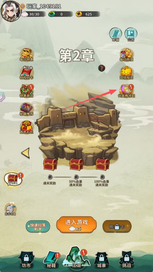 1)在游戏内,【主页】-【代金券领取】