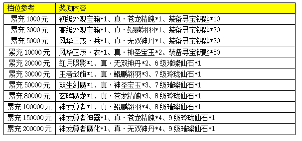 1、活动期间内,仅计算单角色实付累计充值总额,