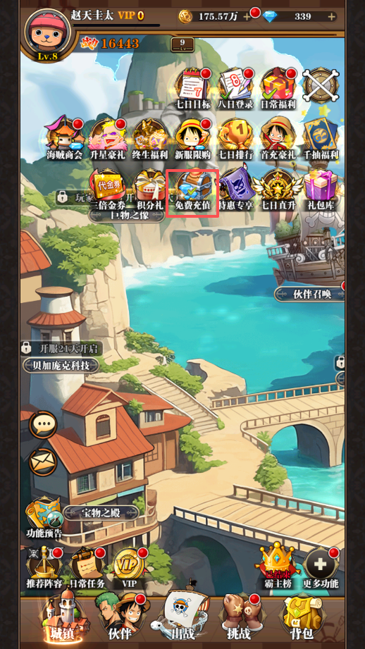 4、开服第2天点击主界面【免费充值】:领取1000元限时代金券