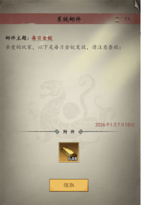 在游戏内,邮件界面,每日自动发放