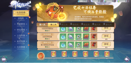 2.建角“七日任务”务必尽最大能力做完,毕竟能产出大量修为经验,实在不能做完的,留着后面几天做,一样可以获取修为经验,总结:柿子先挑软的捏,任务先挑简单做!