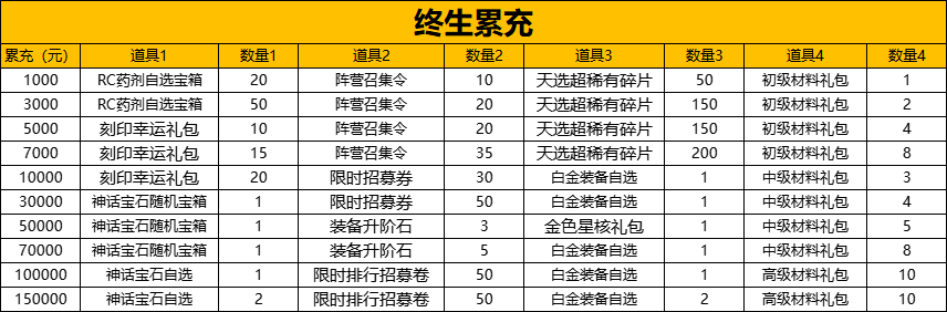 1、历史累计充值达标即可领取对应档位及以下档位奖励