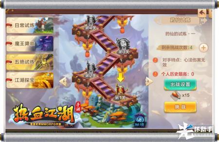 青春武侠MMORPG大作《热血江湖手游》还原经典,用风趣幽默的游戏剧情,充满乐趣的多样玩法,为广大玩家构建出一个轻松愉快的江湖世界。在游戏中,玩家不仅可以与韩飞官、谭花磷等角色共闯江湖,更能得到天下五绝的亲自指点,习得他们的独门绝技。下面就让我们详细了解一下游戏中的五绝试炼玩法!