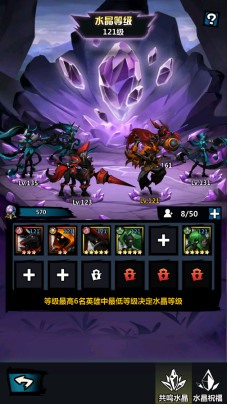 3、玩家每次进化英雄时均可获得联结晶片,联结晶片可以用来突破水晶祝福的阶级。每次传奇英雄突破均可提升全体英雄的属性加成。每提升十级祝福会提升一阶。每阶的突破会大幅度提升全体英雄属性。