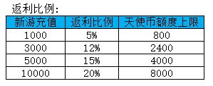 1、玩家在(新游)刷金版充值后,可返回旧游(三倍版)累充额度一定比例的天使币