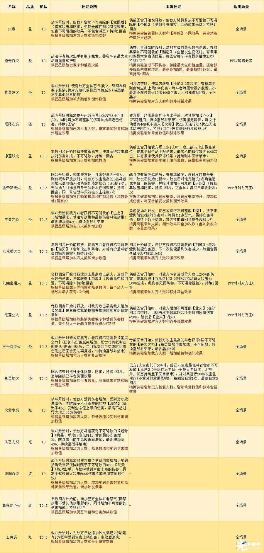 T0.5 强力:净莲妖火、金帝焚天炎、生灵之焱、八荒破灭炎、九幽金祖火、红莲业火、三千焱炎火、龟灵地火