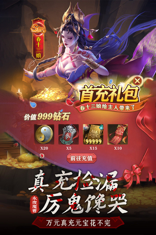 【超高福利】:登陆领千抽、升级领万元充值卡、通过历练关卡获的额外的1000抽、更有各种各样的鬼神任务领取到心意的鬼神。真正做到了不靠数值卡关!核心鬼神轻松获得,零氪配上高福利也可以不掉队。