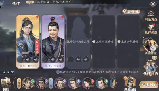 PS:玩家需注意,不要每一位伙伴都提升等级,仅提升上阵5位的等级即可,因上阵等级的伙伴可被继承等级。