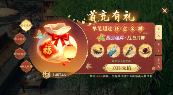 2、首充奖励(性价比很高,可以在前期帮助你获取很多资源),必备可全档位拿下