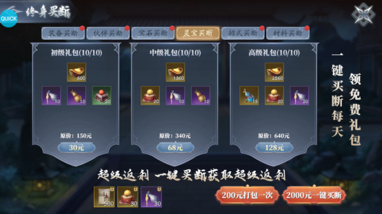 1、终身买断(购买之后,每日都可进行领取)。前期材料还是比较稀缺的,这边可以快速补充。一键买断额外赠送25%代金