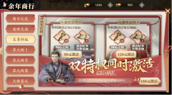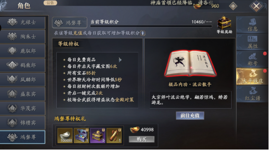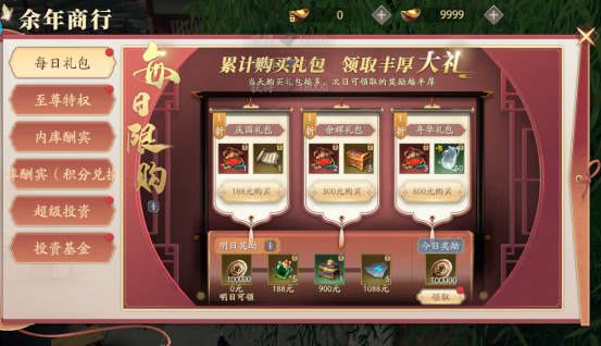 余年商行、特权全购入,只要有付费项直接购买。不过也别忘记购买领取,左上角头像-太平钱庄等级奖励