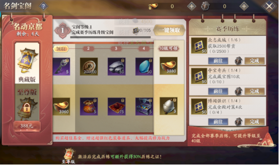 5、名剑宝阁(额外游历值获取,外加其它奖励)