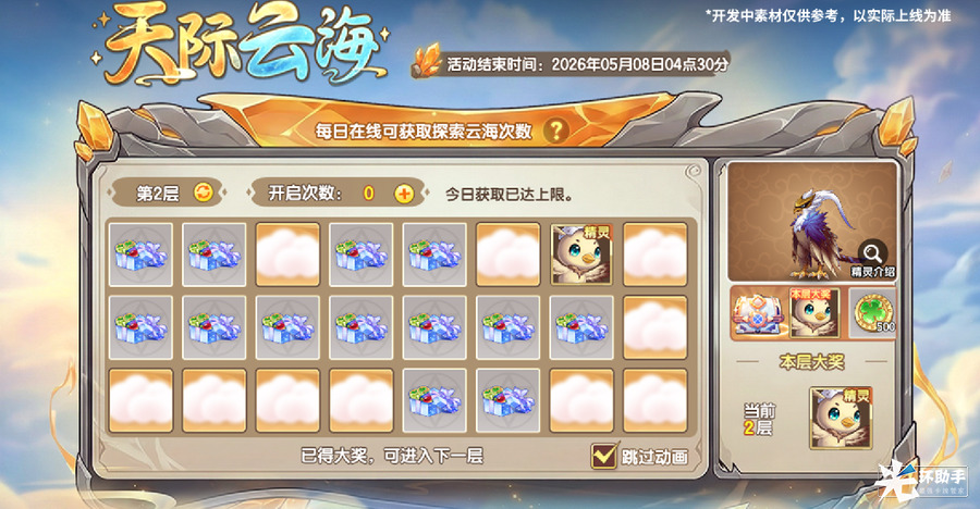这云海间的宝藏,是勇敢翱翔换来的惊喜。小西普每日在线时长可获得探索云海的机会,请拨开云雾,邂逅这份惊喜吧。