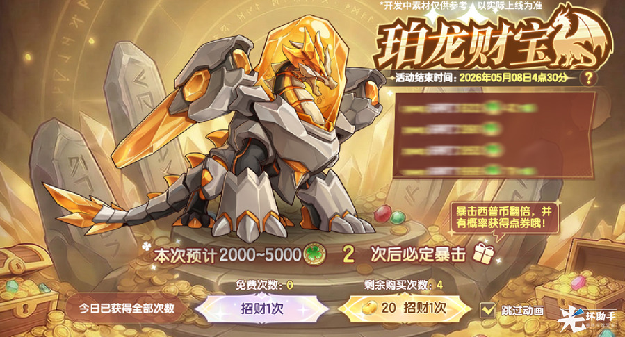 获取方式:前往雷霆峡谷新场景·永恒晶窟处解除三根石柱的封印即可唤醒异星珀龙,在散落的琥珀结晶中可以领取一阶精灵晶珀龙,每日仅可领取一次。击败远古BOSS异星珀龙即可获得进化晶核与徽章,每日仅有一次挑战机会