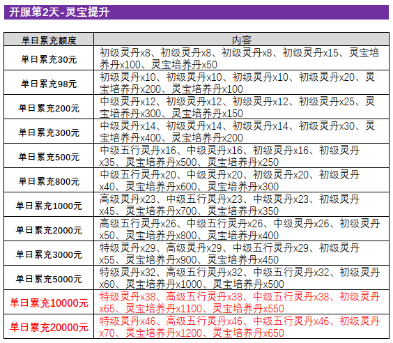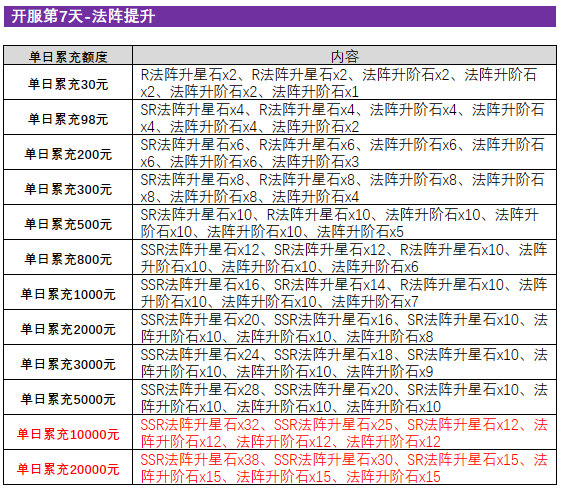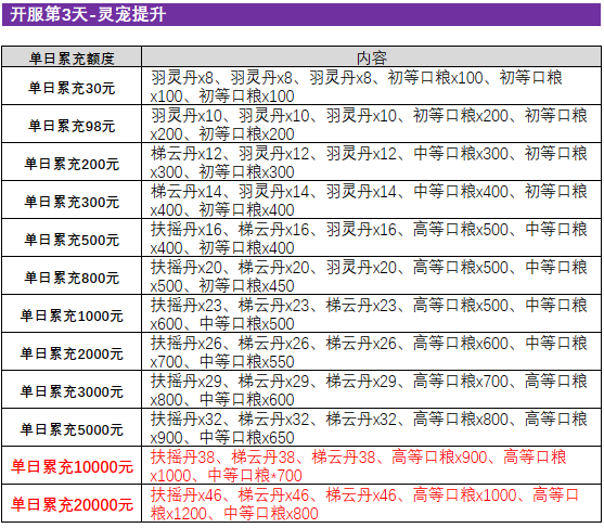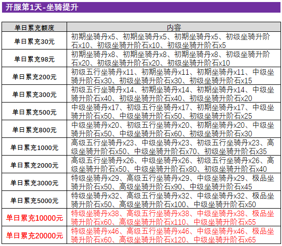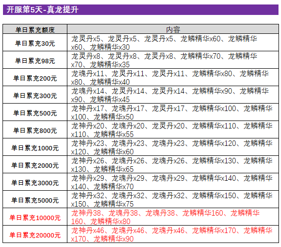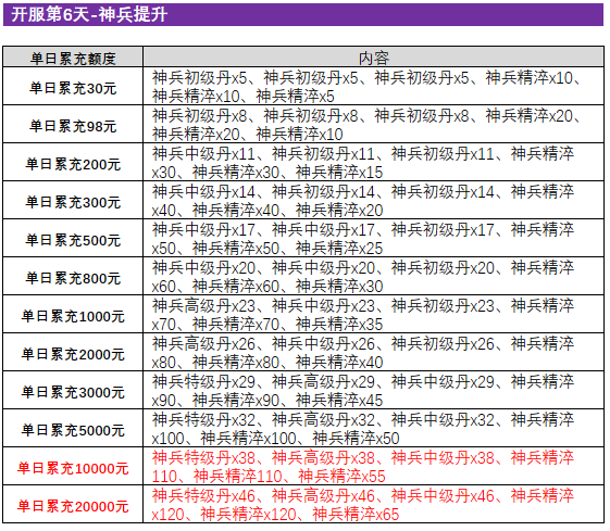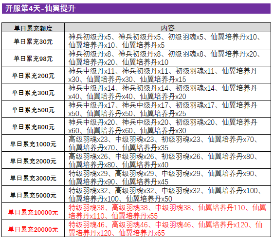 活动四、开服7日限时单日累充(游戏内自动发放)