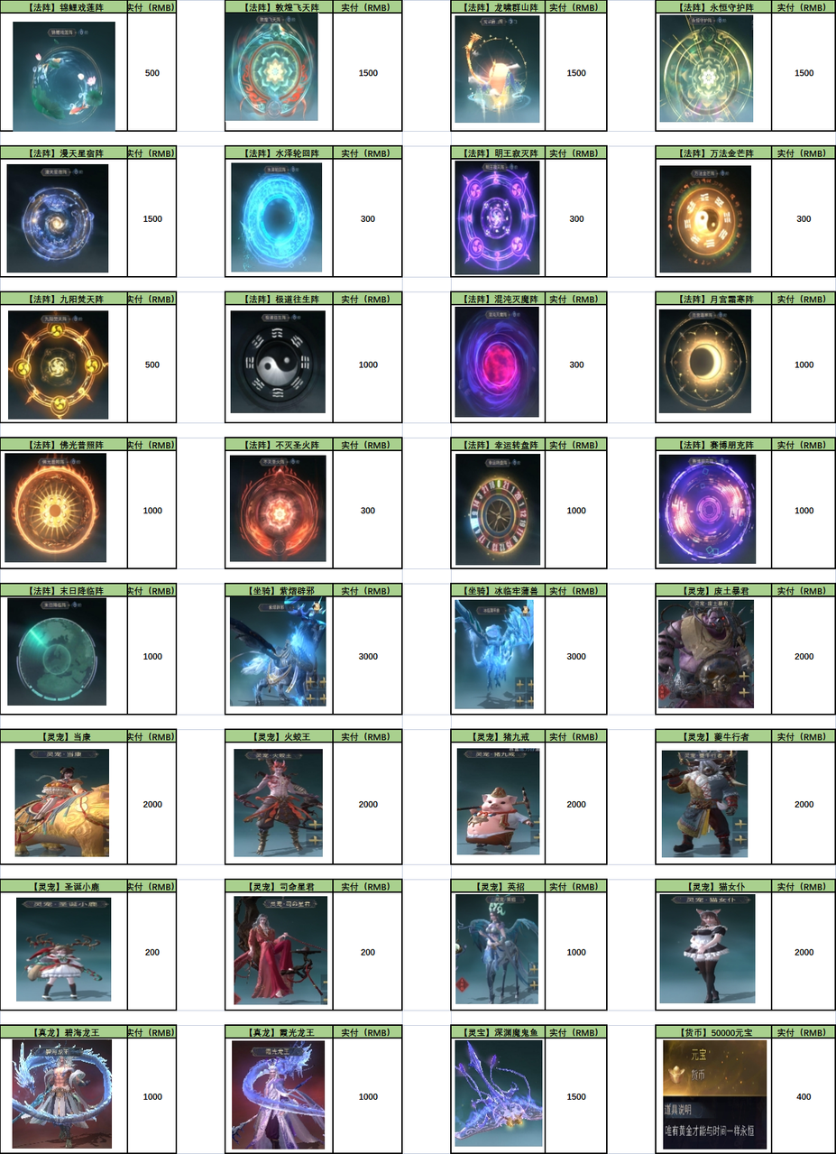 灵宝培养丹*199、初等口粮*199、龙鳞精华*199、