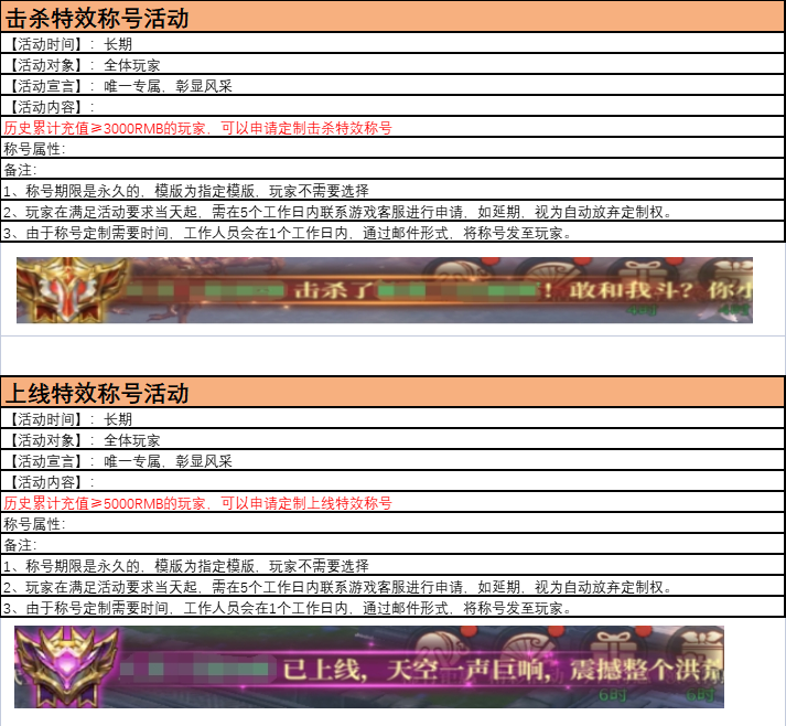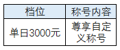 注:角色单日【实付】充值金额满足活动档位,可联系客服申请定制称号,通过邮件发放