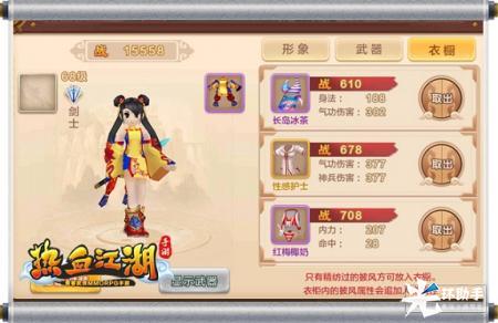 如果玩家有闲置的时装,并达到了开启衣橱玩法的条件,那么玩家就可以选择将至少精纺过一次的时装放置到衣橱里。放入衣橱内的时装,还可以将相关属性则会追加到角色人物上噢。衣橱内放置的时装是随时可以取出的。而且衣橱放置时装的数量也会随之玩家角色对应条件的达成而提高,所以拥有衣橱不仅可以解决《热血江湖手游》中玩家闲置时装的困扰,还能将闲置时装转为直接的战力,真是妙不可言!