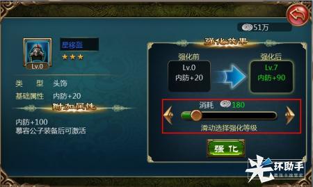 所有装备均可以通过游戏内产出的银两进行强化,强化100%成功。并可通过移动滑块,选择需要强化的等级: