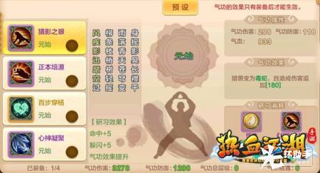 相信大家一定都知道,《热血江湖手游》弓手的武功里面有三个技能可以通过气功转换为被动武功。这个是非常重要的,因为能够在操作界面释放的技能位置只有四个,三个被动加四个主动,你等于同时携带了七个武功(因为气功最多只能勾选4个)PVE与PVP的气功勾选也是不同的。
