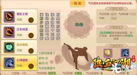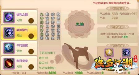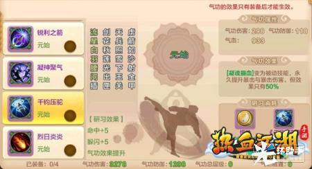 功能:使武功日月同辉变为被动,并永久生效,触发几率随气功的层数的增加而增加。