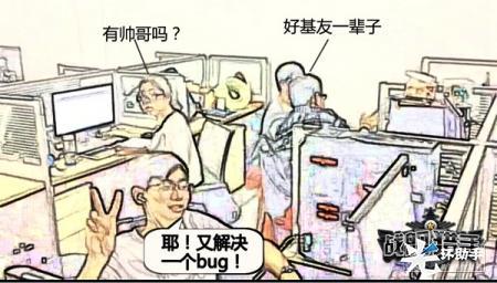 不过,经过小九经天纬地的口才说明来意后(老子是来请主策的!),他们对小九表示了热烈的欢迎和诚挚的问候。而为了公测版本最后冲刺的小哥,在小九的光环下顺利解决了一个BUG后,打出了骄傲的手势,仿佛在说:“老子修复一个BUG,只需要2分钟!”